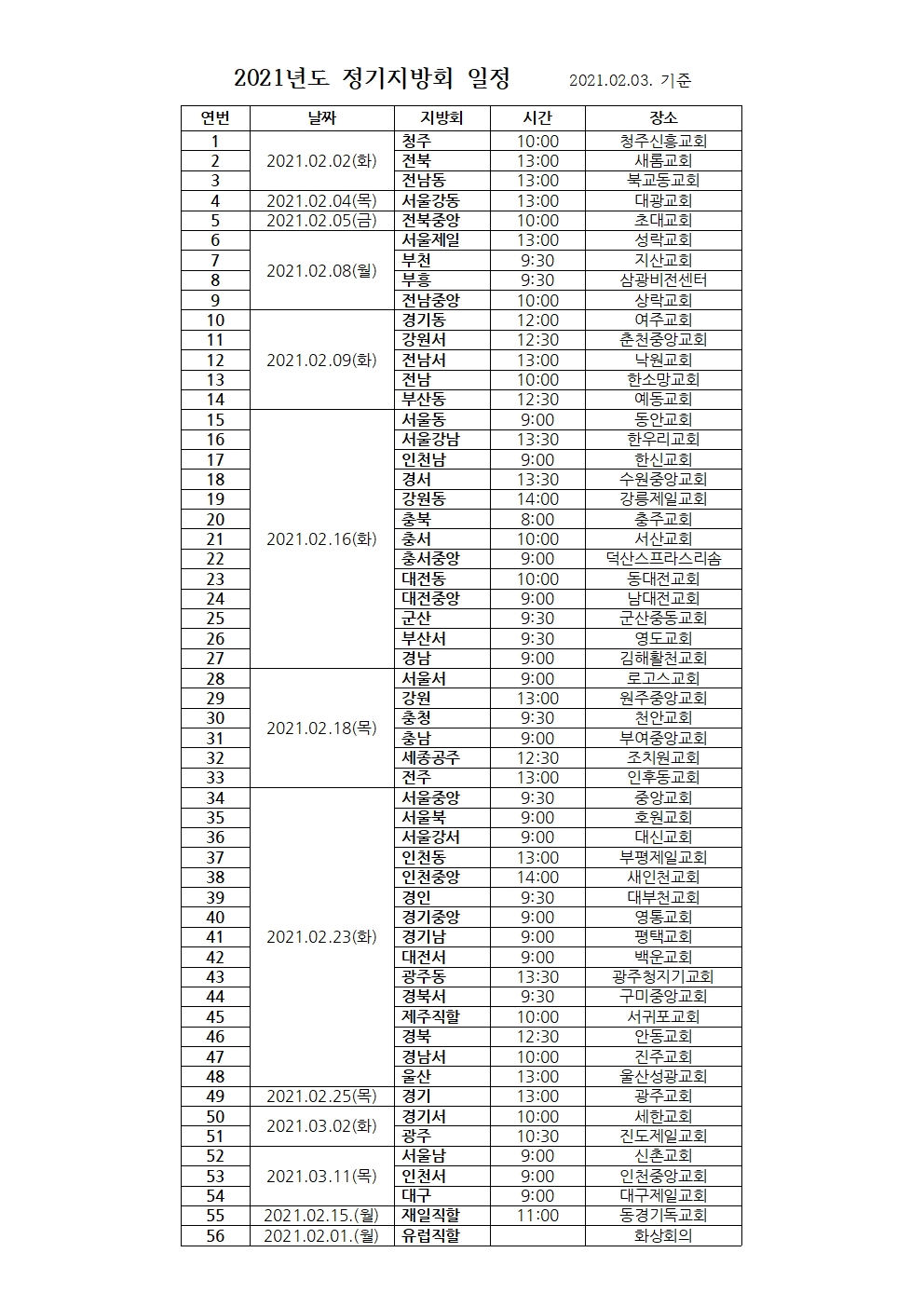 아래의 .pdf 첨부파일을 다운로드 하셔서 지방회 일정을 확인하시기 바랍니다.