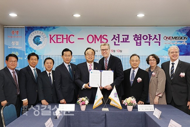 우리교단과 오엠에스(OMS)가 지난 5월 13일 총회본부에서 전략적 파트너십 선교협약을 새롭게 체결했다. 이날 양측은 서로 선교사 모집 및 훈련 등에 협력하고, 해외선교사가 선교지에서 보다 안정적으로 보호를 받을 수 있도록 돕기로 합의했다.