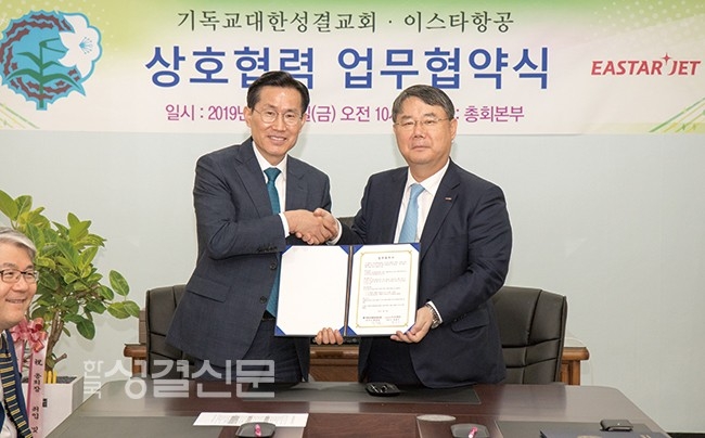 우리교단(총회장 류정호 목사)과 이스타항공(대표이사 최종구)이 지난 6월 28일 총회본부 2층 총회장실에서 업무협약을 체결하고 상호협력을 추진키로 했다.